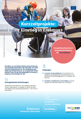 Dein Weg ins Ausland: Wie geht das und wer bezahlt? Was musst du beachten? Die kurze Broschüre gibt Auszubildenden, die gerne im Ausland lernen möchten, knapp und übersichtlich alle notwendigen Infos zu Auslandsaufenthalten mit Erasmus+ an die Hand - inklusive Infoteil für den Chef oder die Chefin.