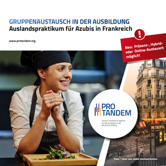 Die deutsch-französische Agentur ProTandem fördert die Mobilität von Jugendlichen und Erwachsenen in der beruflichen Aus- und Weiterbildung in Deutschland und Frankreich. Sie finanziert deutsch-französische Mobilitäten und unterstützt die Projektträger bei der Organisation der Austauschmaßnahmen.